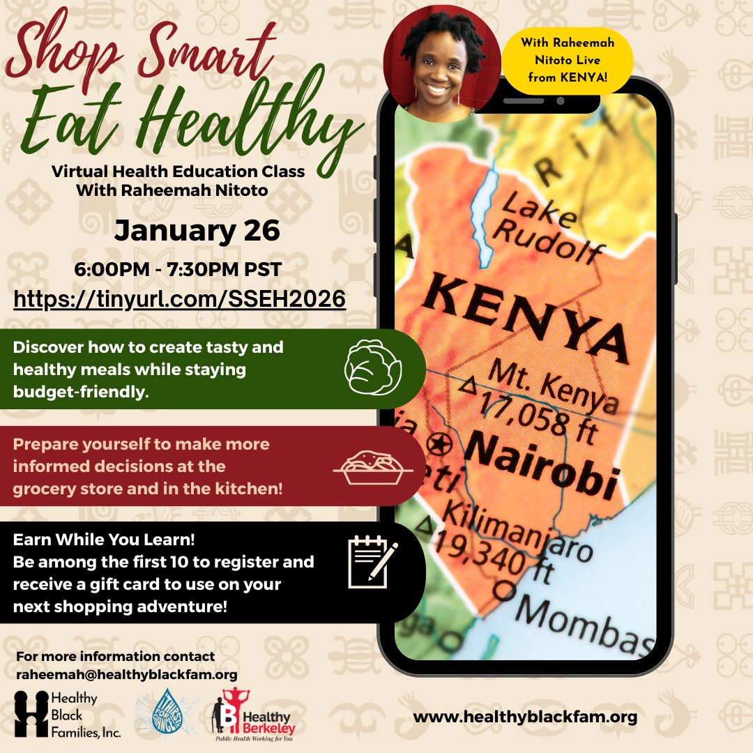 Join us for our next Shop Smart, Eat Healthy monthly class on Monday, January 26, 2026, from 6:00–7:30 PM PST. This interactive virtual session will share practical tips for planning nutritious meals, stretching your food budget, and making healthier choices while shopping. Participants will gain easy, real-life strategies to support healthier eating habits for themselves and their families—all from the comfort of home.